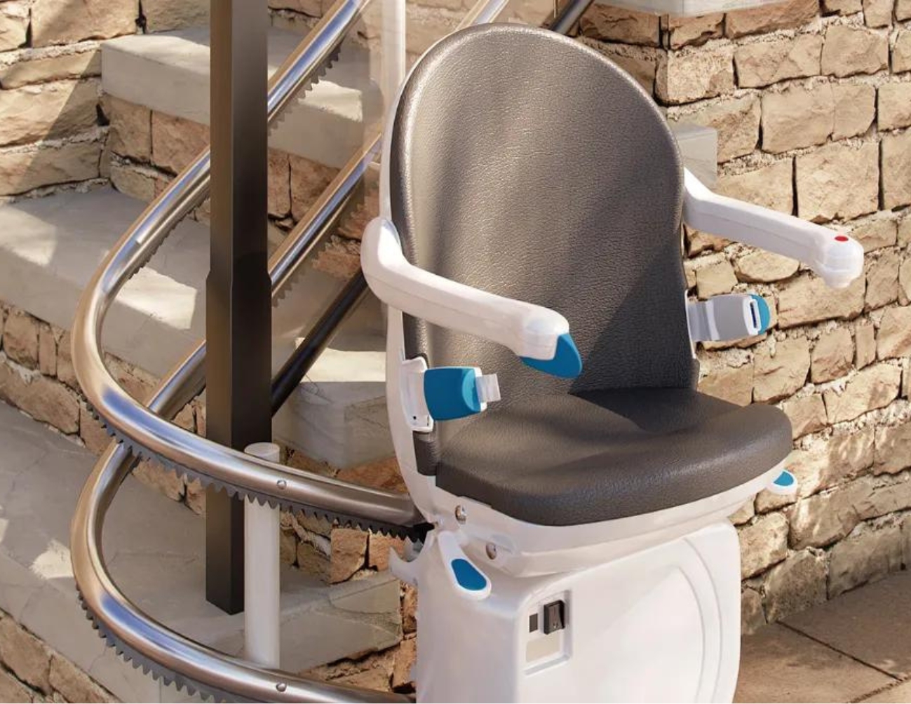 Le Handicare 4000 est l'unique chaise monte-escalier permettant d'effectuer une courbe dans un escalier situé à l'extérieur d'une habitation. Il est l'appareil idéal pour continuer d'accéder à son jardin en toute sécurité.
