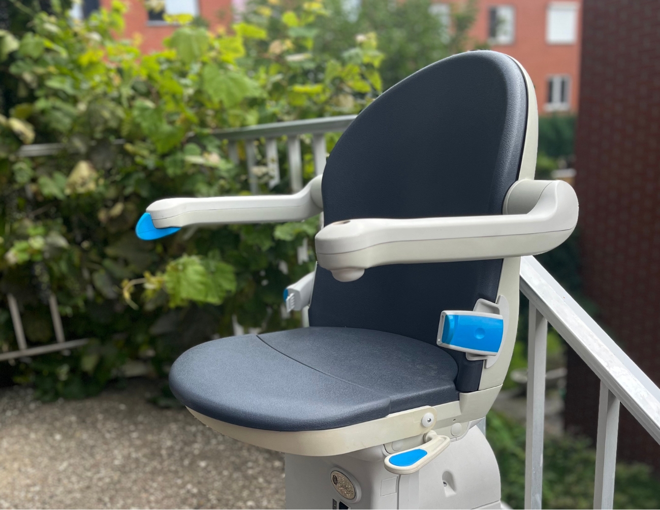 Une chaise monte-escaliers est un dispositif mécanique conçu pour aider les personnes à mobilité réduite à monter et descendre les escaliers en toute sécurité et confort. Ce dispositif se compose principalement d'un siège confortable avec des accoudoirs, une ceinture de sécurité et souvent un repose-pieds, permettant à l'utilisateur de s'asseoir en toute sécurité pendant le déplacement. La chaise se déplace le long d'un rail fixé sur l'escalier, suivant sa forme et ses virages. Ce rail peut être droit ou courbé, en fonction de la configuration de l'escalier.